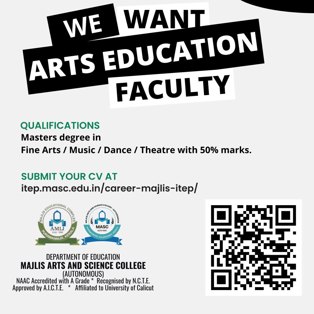We accept CVs from qualified faculty as per NCTE norms to the posts of assistant professors in Education, Zoology, Botany, Mathematics, Physics, Chemistry, English, Malayalam, History, Arabic, Commerce, Arts Education, Physical Education for Department of Education.